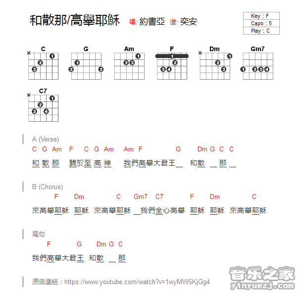 吉他约书亚《和散那/高举耶稣》吉他谱_吉他弹唱谱