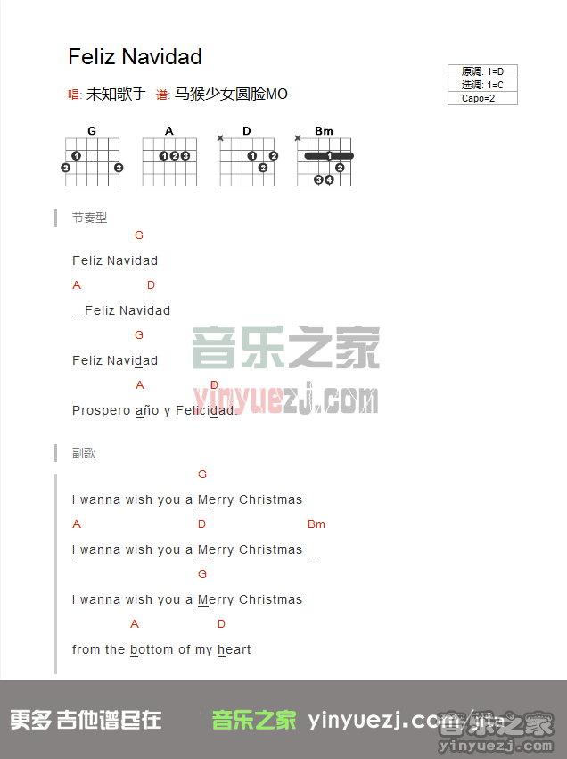 吉他《feliz navidad》吉他谱_吉他弹唱谱