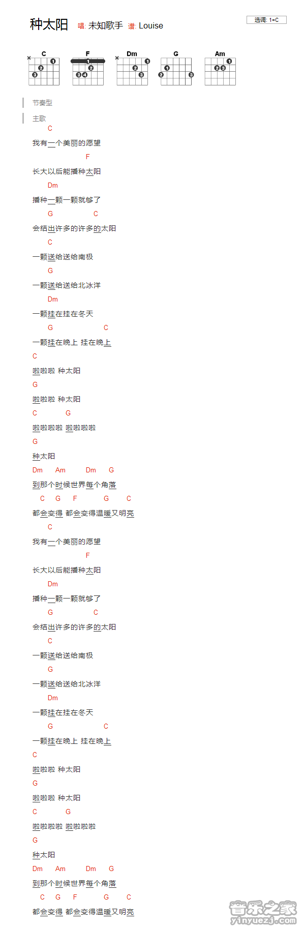 吉他儿歌《种太阳》吉他谱_吉他弹唱谱_YYZJ编配