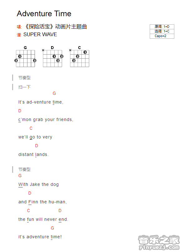 吉他探险活宝主题曲《adventure time》吉他谱_吉他弹唱谱_YYZJ编配