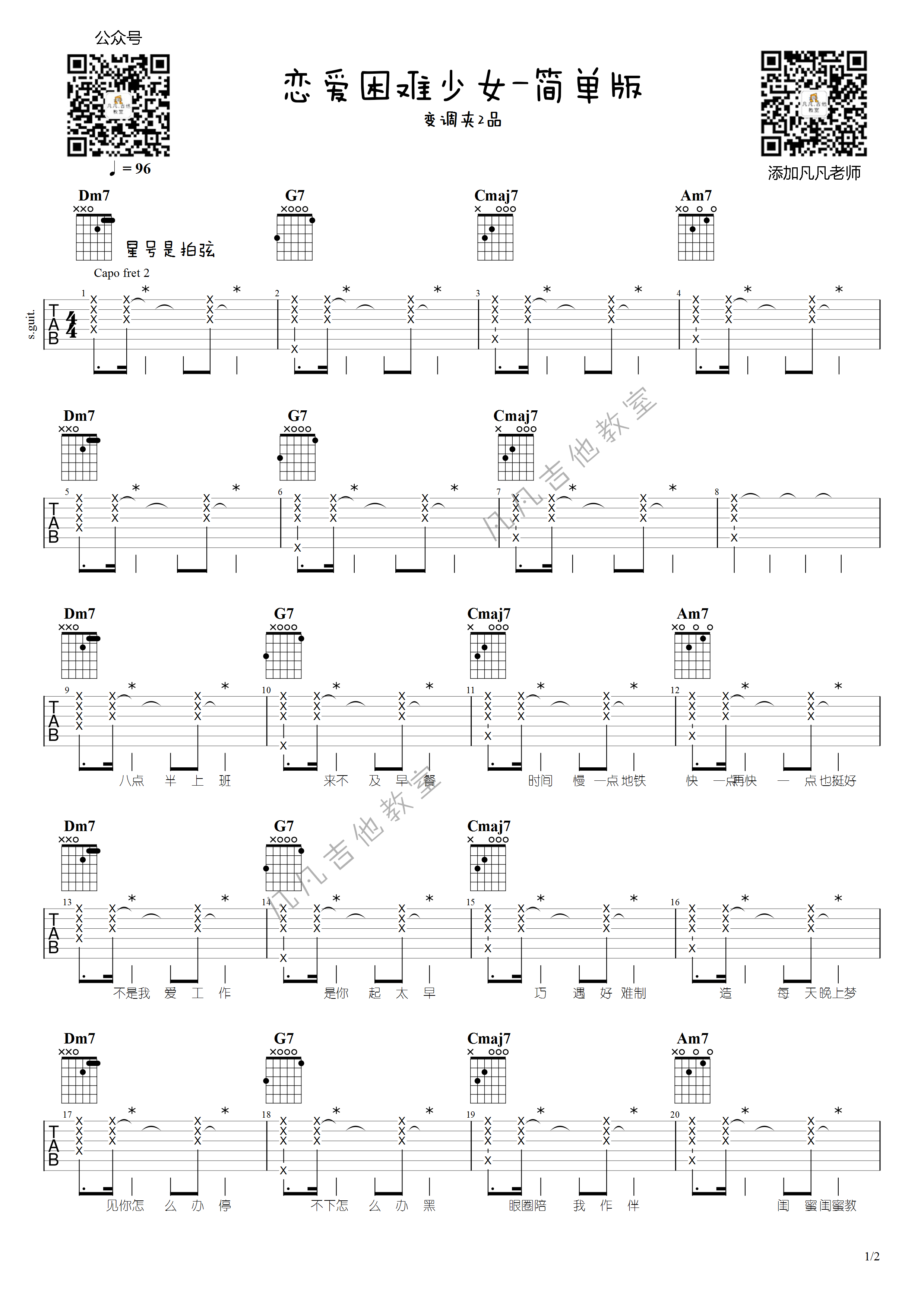吉他ChiliChill《恋爱困难少女》吉他谱_吉他弹唱谱