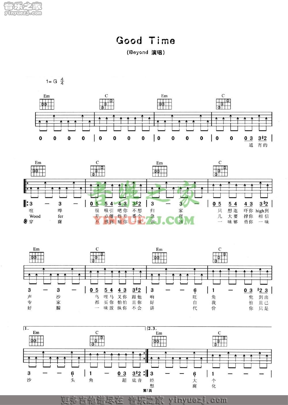 吉他Beyond《good time》吉他谱_吉他弹唱谱_YYZJ编配