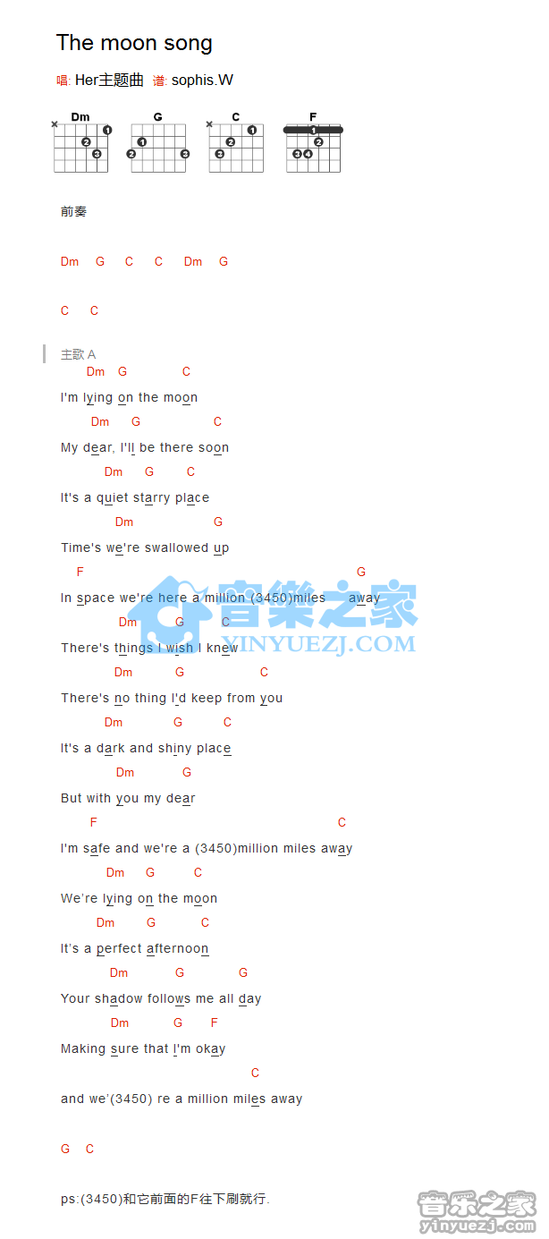 吉他Her主题曲《The moon song》吉他谱_吉他弹唱谱_YYZJ编配