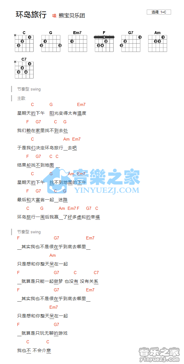 吉他熊宝贝乐团《环岛旅行》吉他谱_吉他弹唱谱_YYZJ编配
