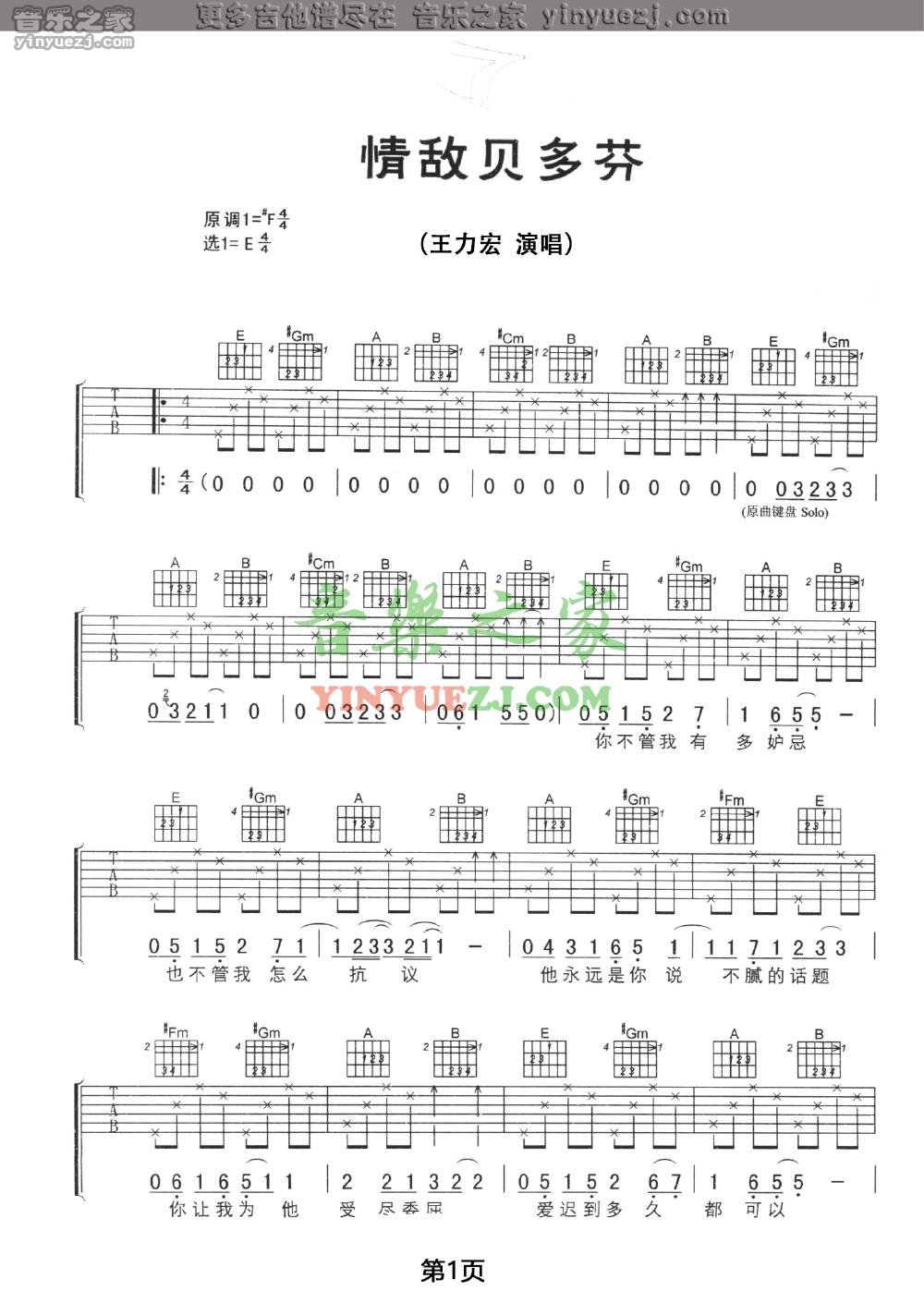 吉他王力宏《情敌贝多芬》吉他谱_吉他弹唱谱_YYZJ编配