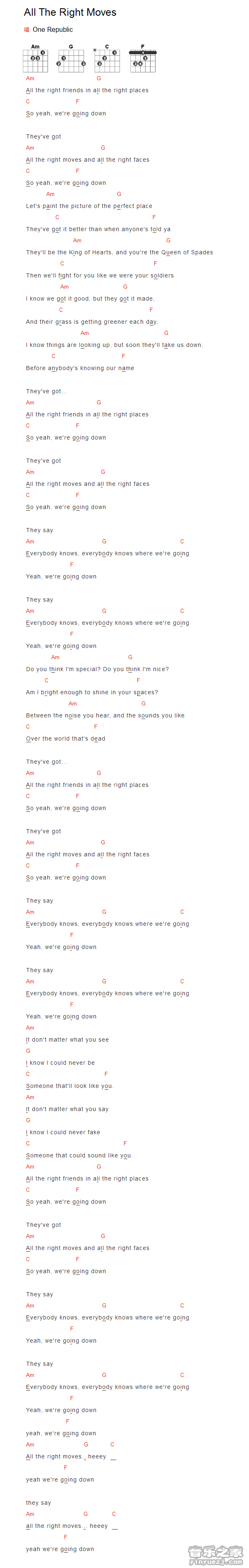 吉他OneRepublic《All The Ringht Moves》吉他谱_吉他弹唱谱_YYZJ编配