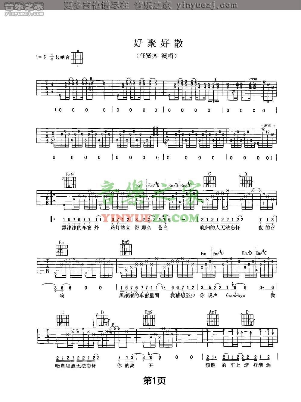 任贤齐《好聚好散》吉他谱,YYZJ编配出品,共有4张高清图谱。...
