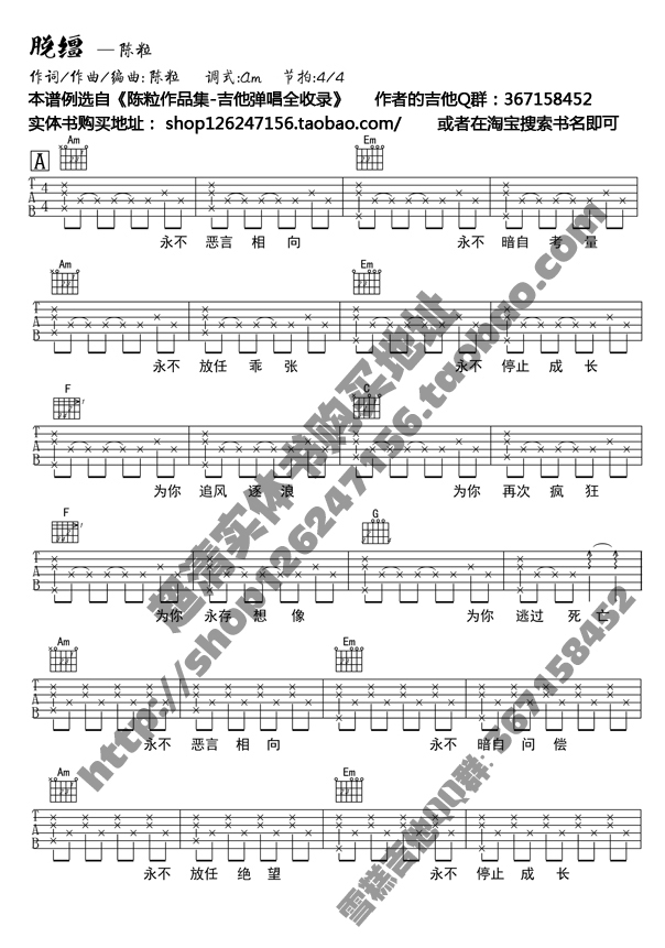 陈粒《脱缰》吉他谱,十万吉他手编配出品,共有2张高清图谱,免翻页排版设计。...