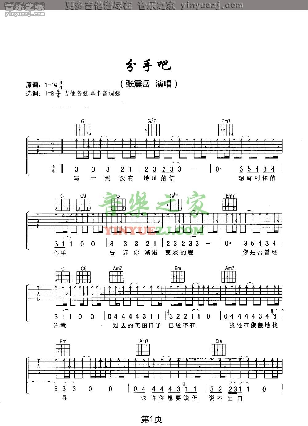 张震岳《分手吧》吉他谱,YYZJ编配出品,共有3张高清图谱。...