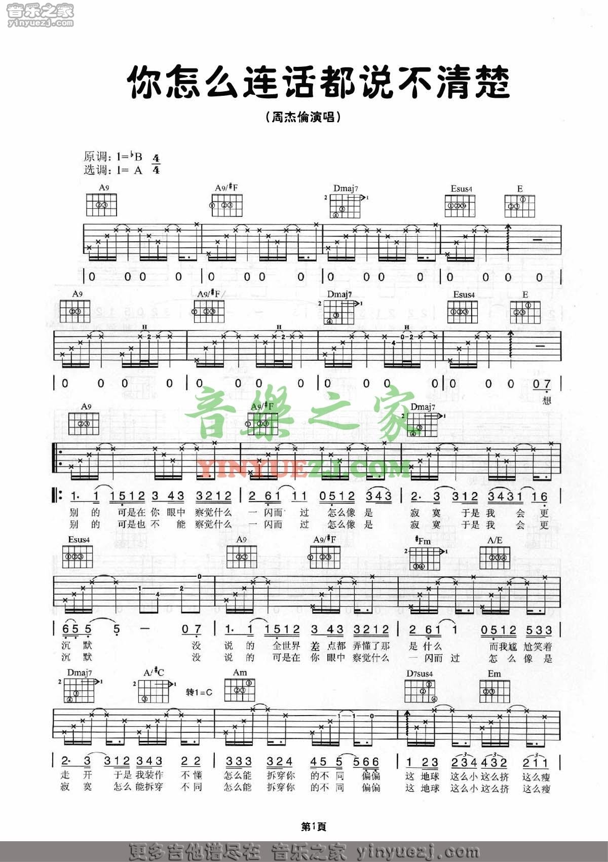 吉他周杰伦《你怎么连话都说不清楚》吉他谱_吉他弹唱谱_YYZJ编配