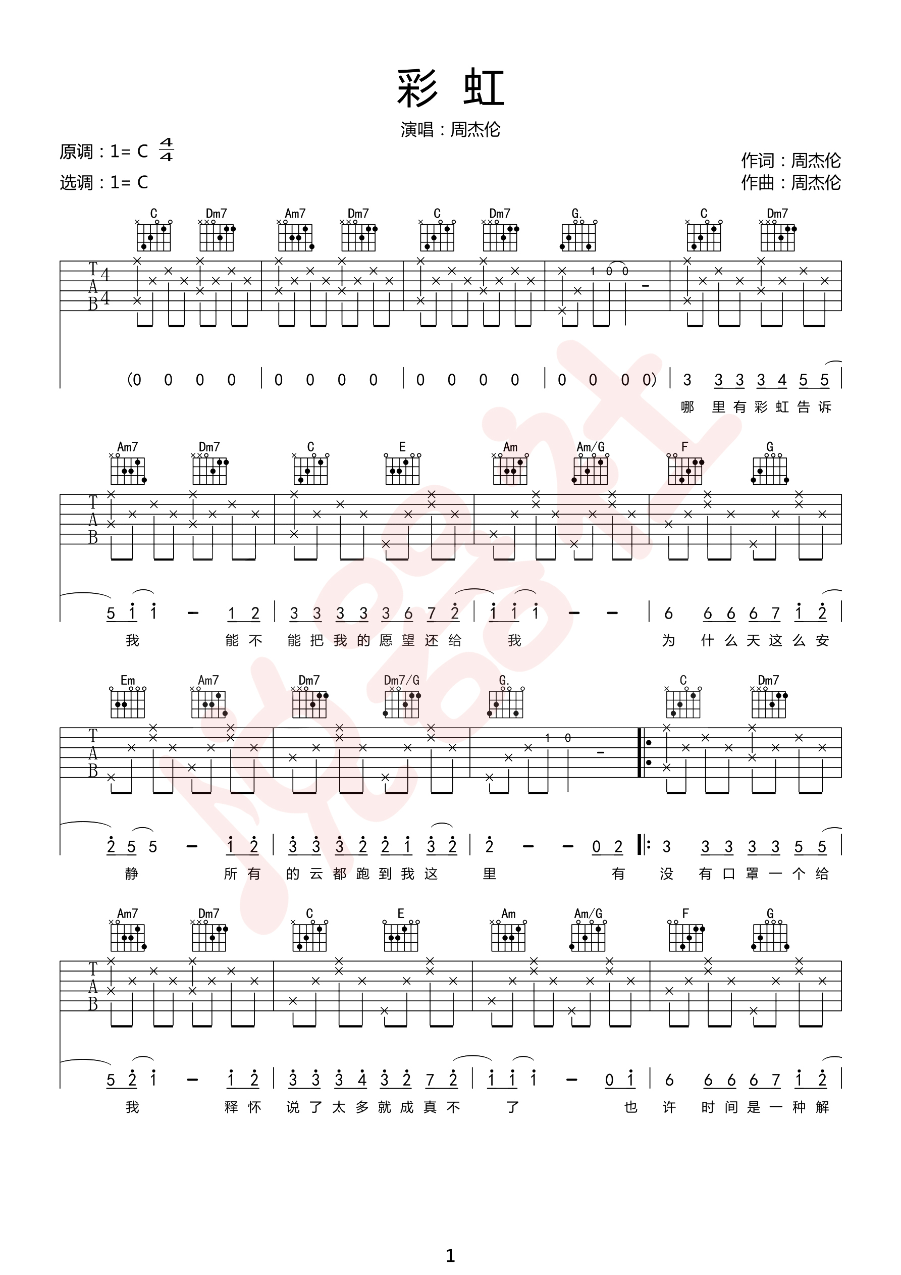 吉他周杰伦《彩虹》吉他谱_吉他弹唱谱_悦器社编配