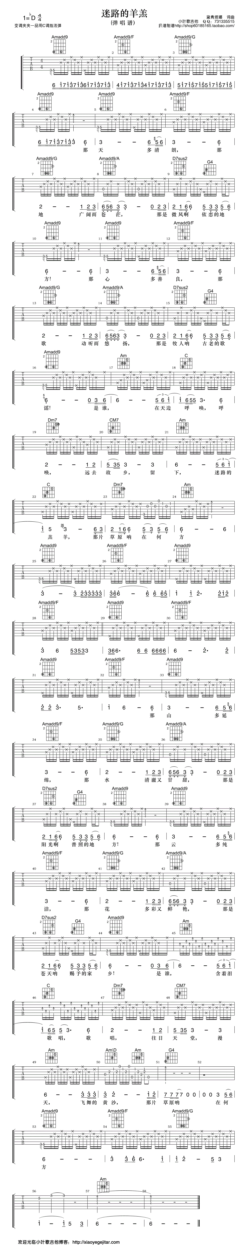 黛青塔娜《迷路的羊羔》吉他谱,小叶歌编配出品,共有1张高清图谱,免翻页排版设计。...