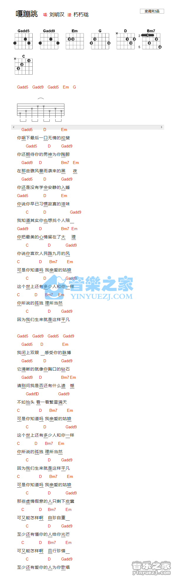吉他刘明汉《嘎蹦跳》吉他谱_吉他弹唱谱_YYZJ编配
