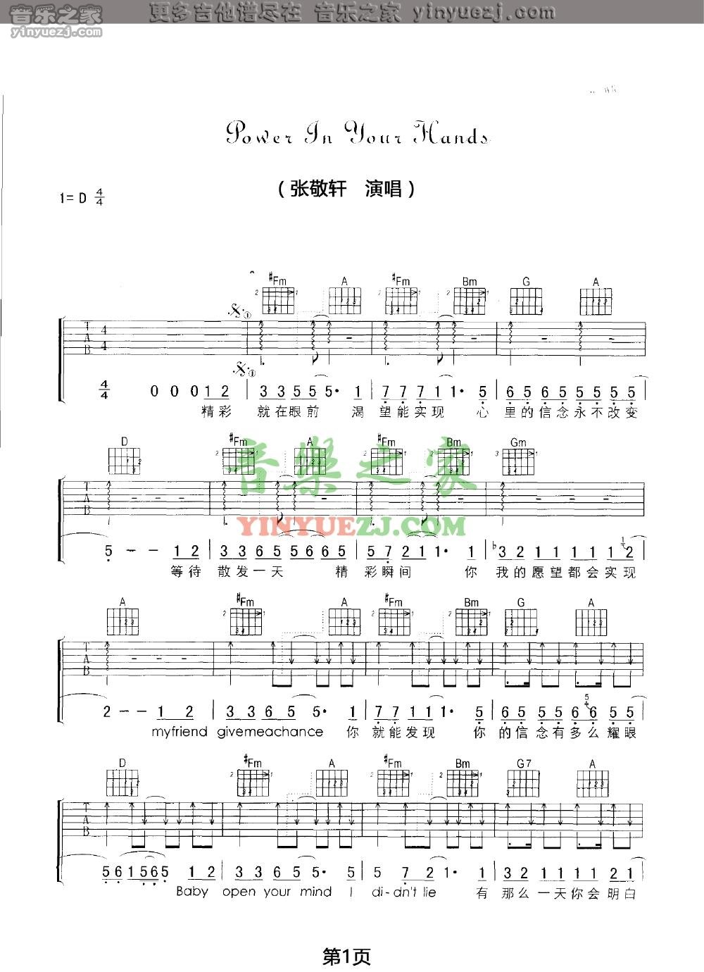 吉他张敬轩《power in your hands》吉他谱_吉他弹唱谱_YYZJ编配