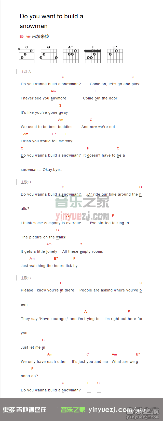 吉他《do you want to build a snowman》吉他谱_吉他弹唱谱