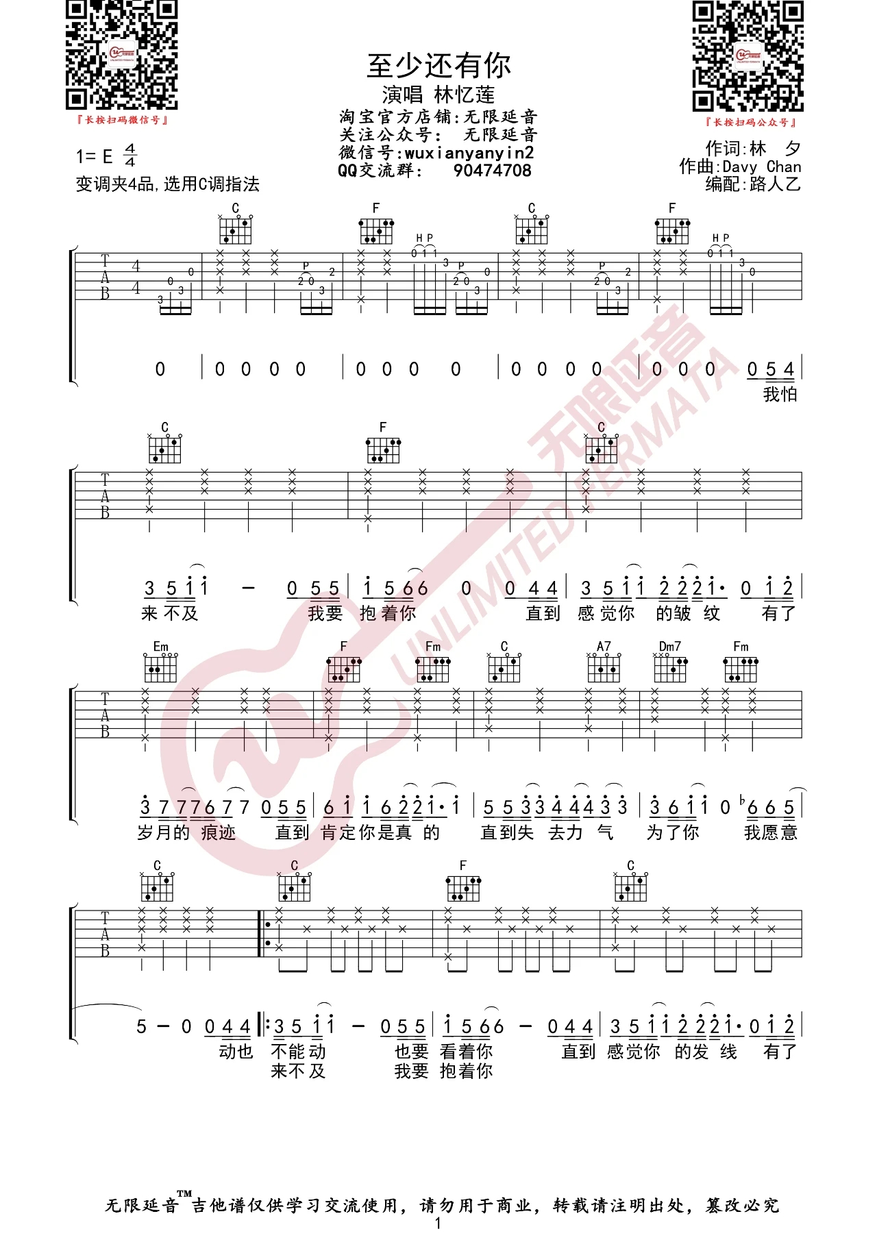 林忆莲《至少还有你》吉他谱,无限延音编配出品,共有3张高清图谱。...