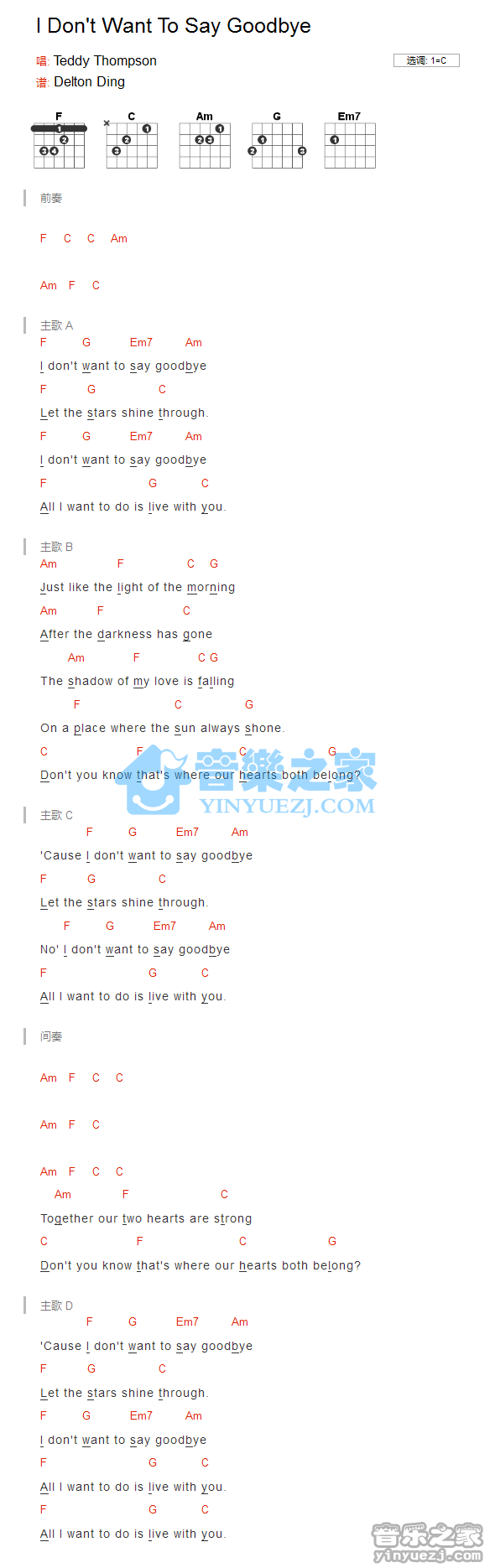 吉他黑豹乐队 《I Don't Want To Say Goodbye》吉他谱_吉他弹唱谱_YYZJ编配