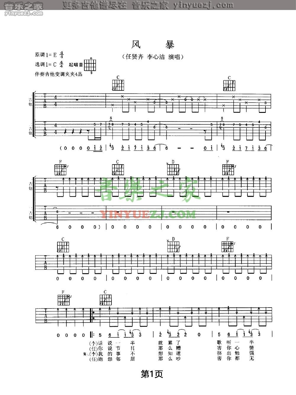 任贤齐/李心洁《风暴》吉他谱,YYZJ编配出品,共有4张高清图谱。...