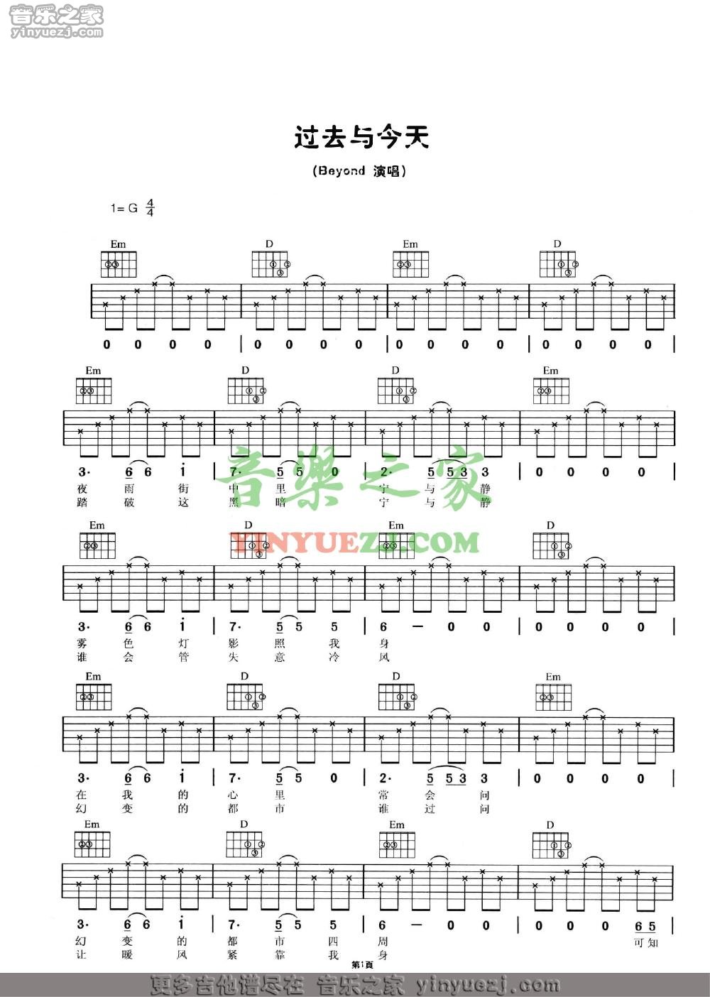 吉他Beyond《过去与今天》吉他谱_吉他弹唱谱_YYZJ编配