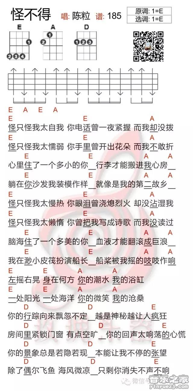 陈粒《怪不得》吉他谱,YYZJ编配出品,共有1张高清图谱,免翻页排版设计。...