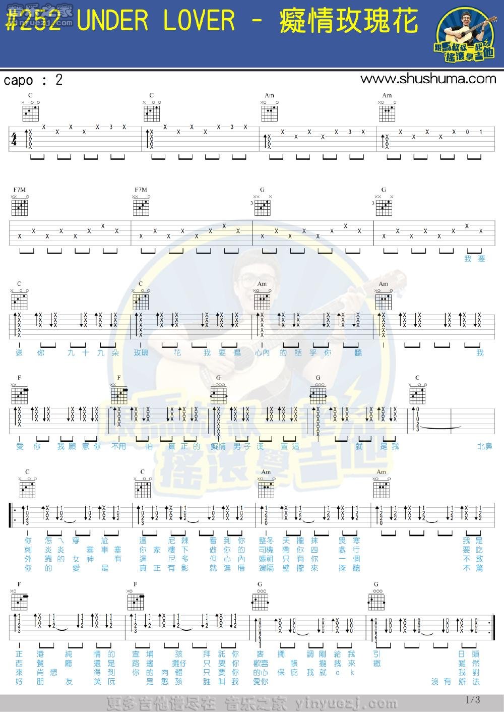 UnderLover《痴情玫瑰花》吉他谱,YYZJ编配出品,共有3张高清图谱。...