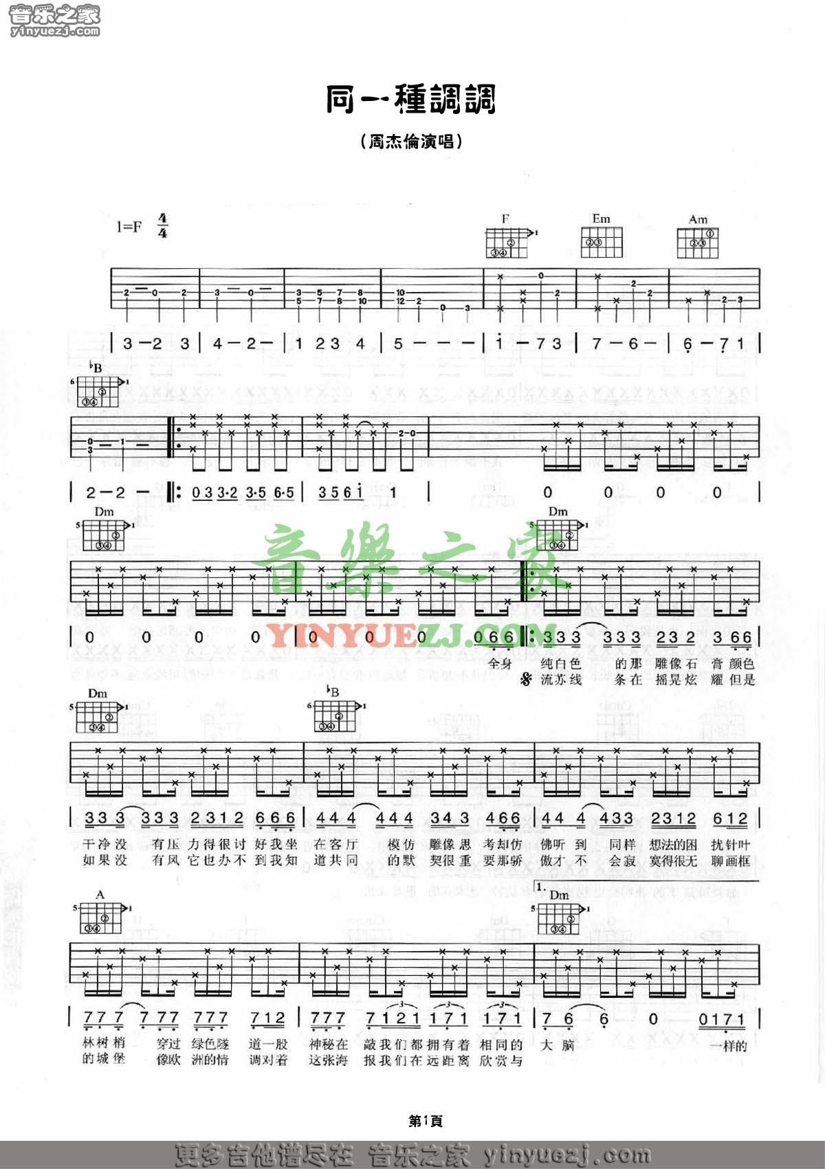 吉他周杰伦《同一种调调》吉他谱_吉他弹唱谱_YYZJ编配