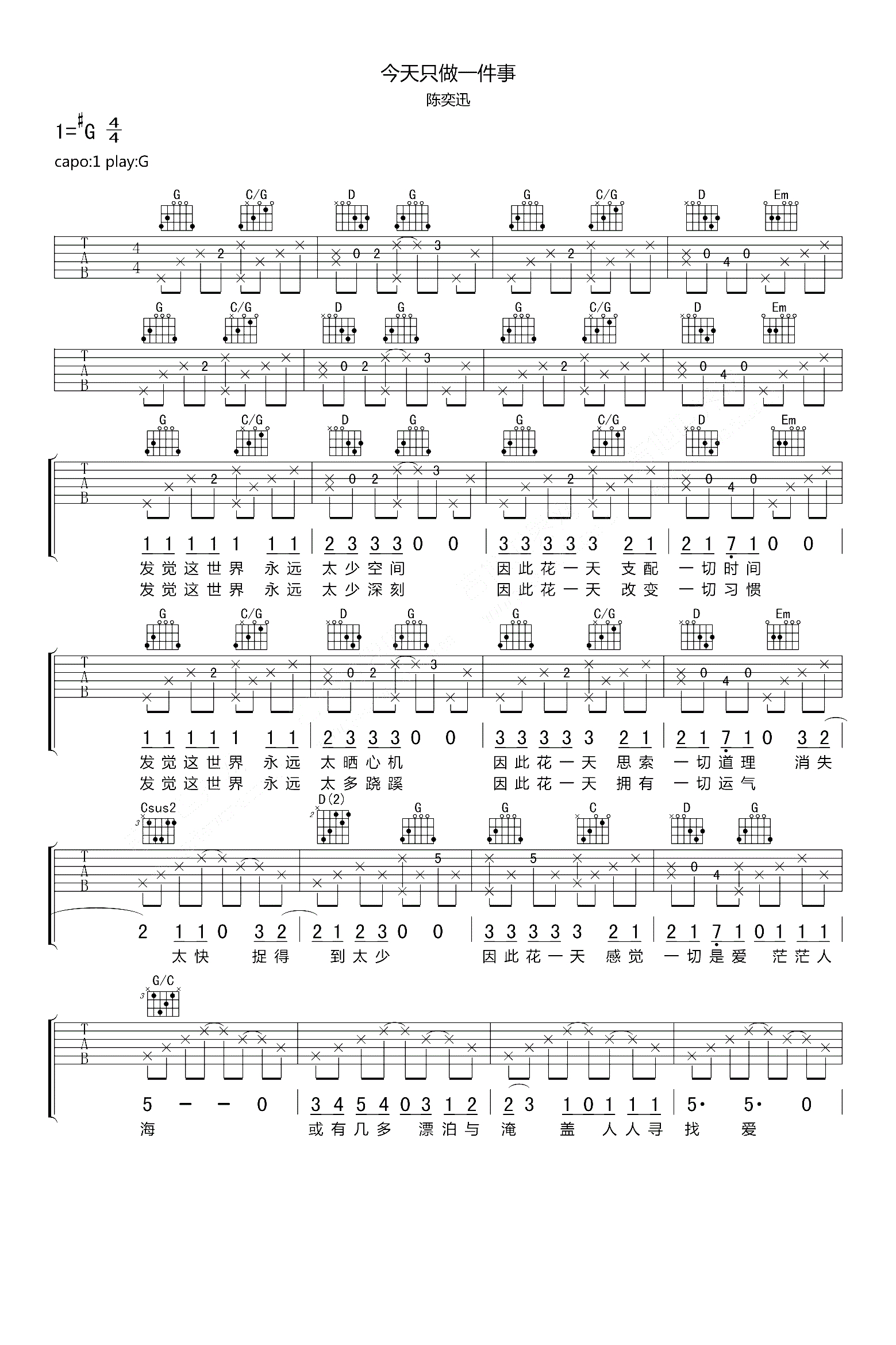 吉他陈奕迅《今生只做一件事》吉他谱_吉他弹唱谱