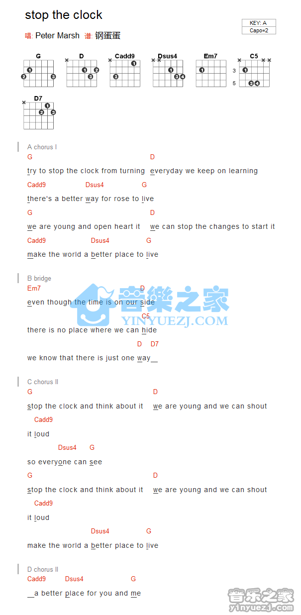 吉他PeterMarsh《stop the clock》吉他谱_吉他弹唱谱_YYZJ编配