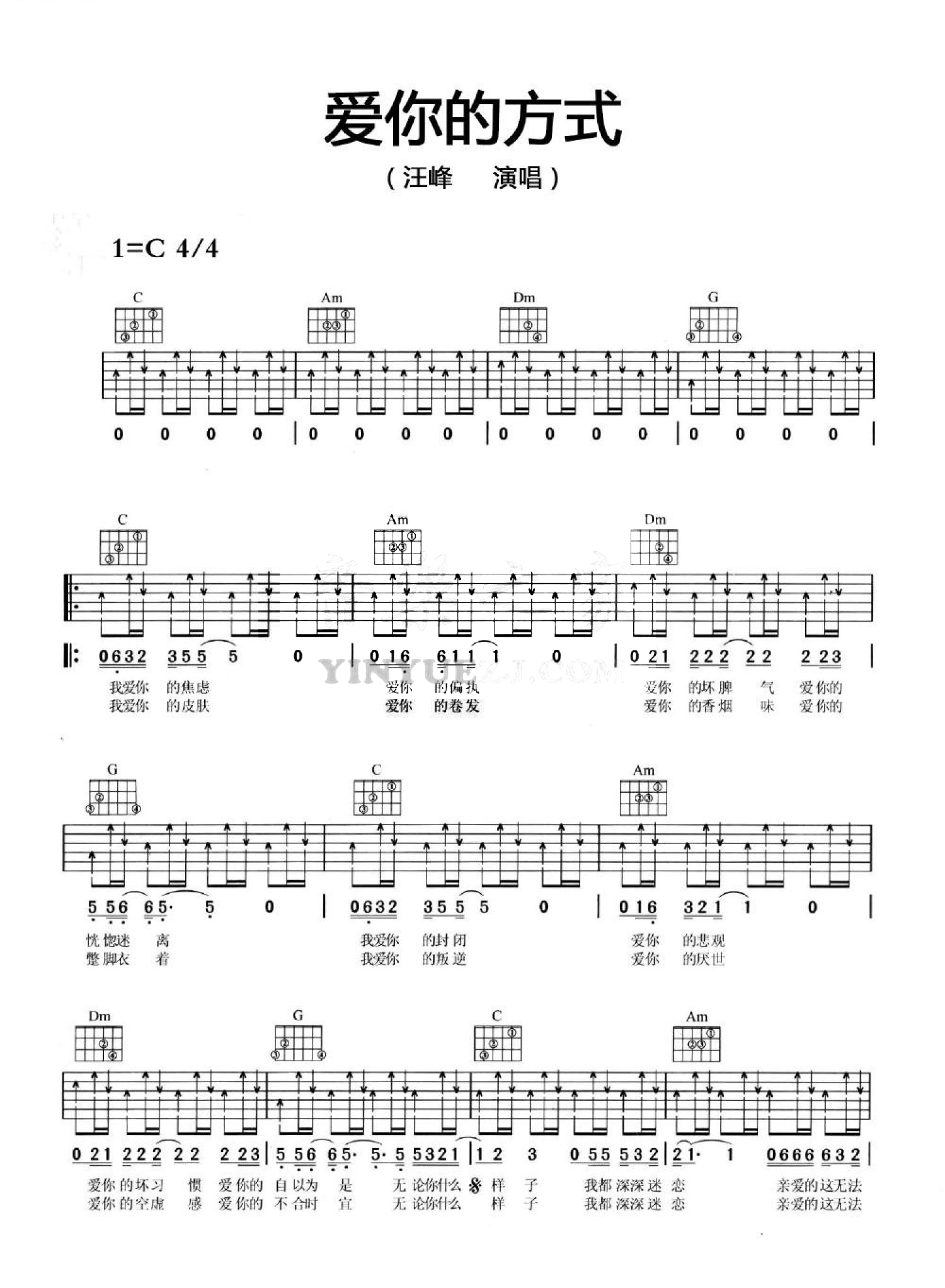 吉他汪峰《爱你的方式》吉他谱_吉他弹唱谱_YYZJ编配