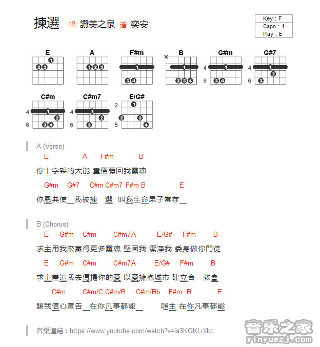 吉他赞美之泉《拣选》吉他谱_吉他弹唱谱_YYZJ编配