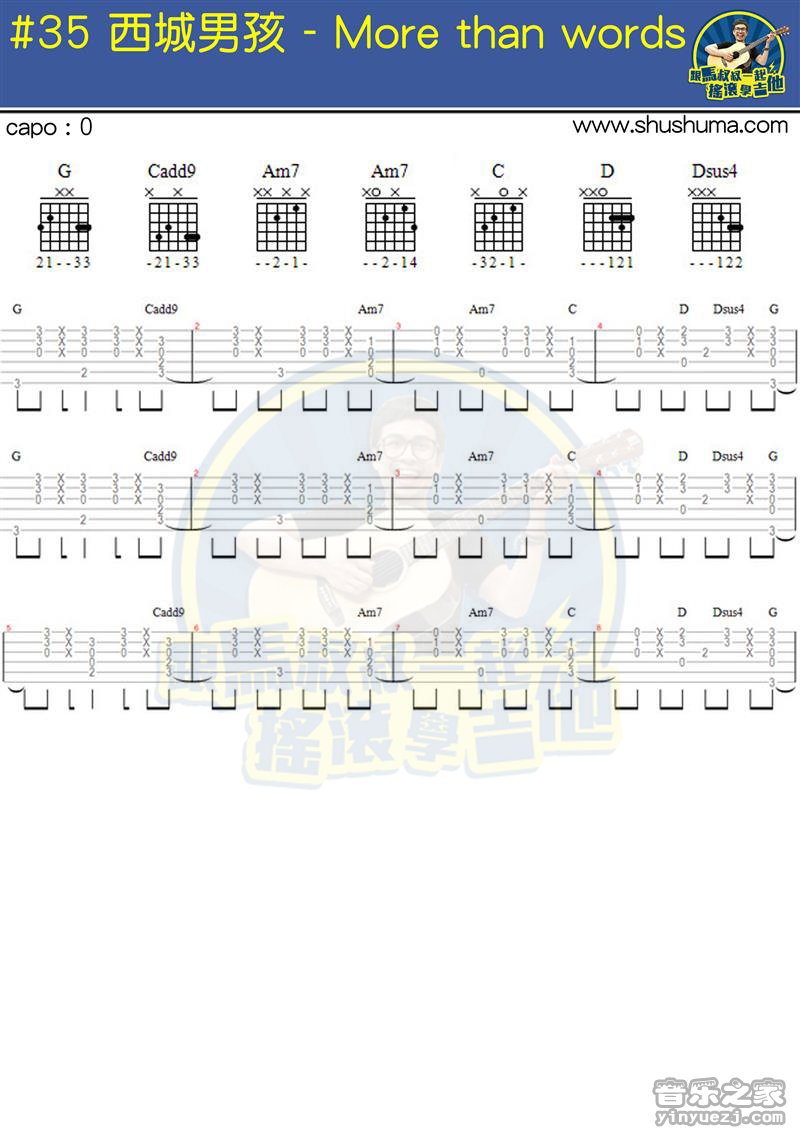 吉他西域男孩《morethanwords》吉他谱_吉他指弹六线谱_马叔叔版编配
