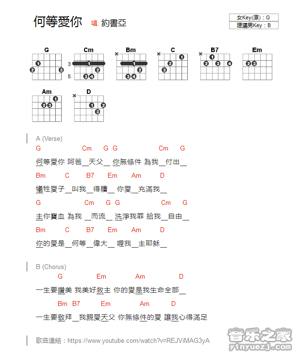 吉他约书亚《何等爱你》吉他谱_吉他弹唱谱_YYZJ编配