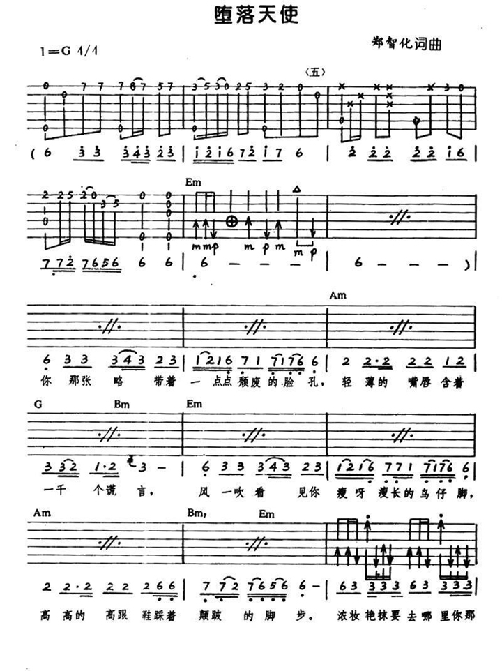 吉他郑智化《堕落天使》吉他谱_吉他弹唱谱