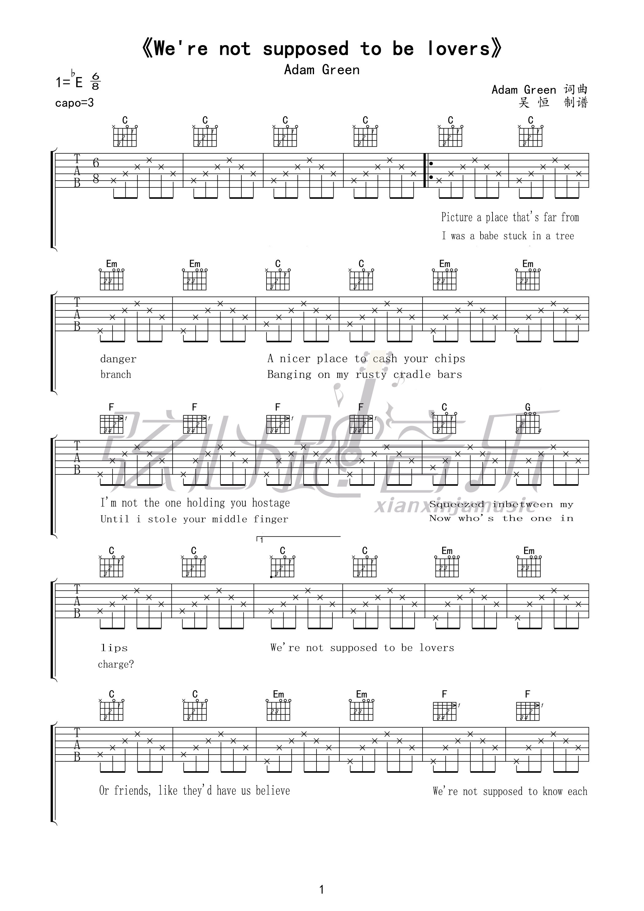 AdamGreen《We'renotsupposedtobelover》吉他谱,弦心距编配出品,共有3张高清图谱。...