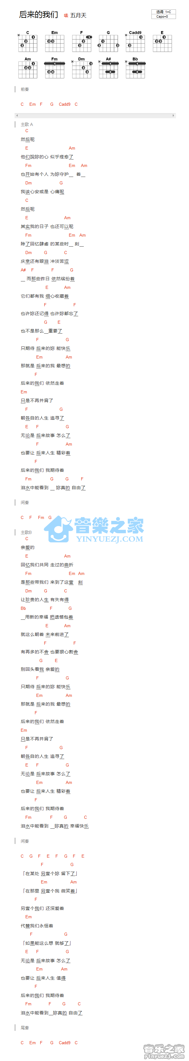 吉他赵雷《成都》吉他谱_吉他弹唱谱_悦器社编配