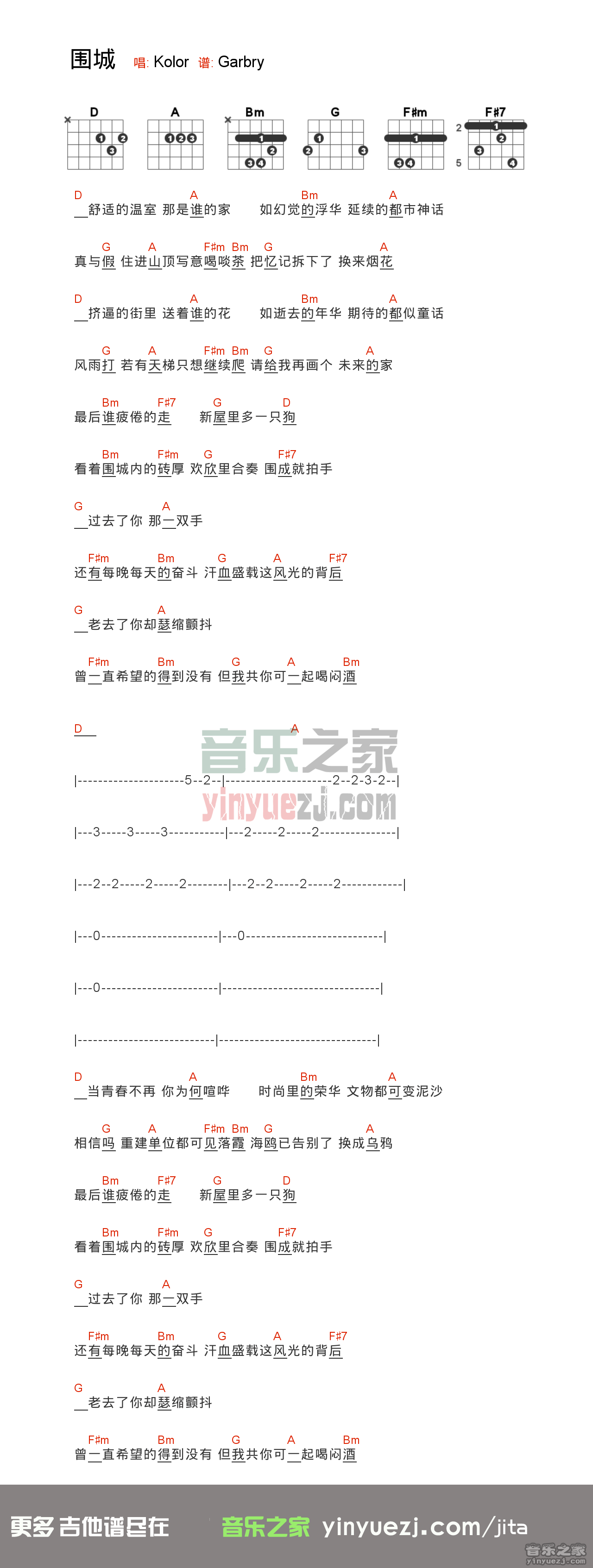 吉他kolor《围城》吉他谱_吉他弹唱谱