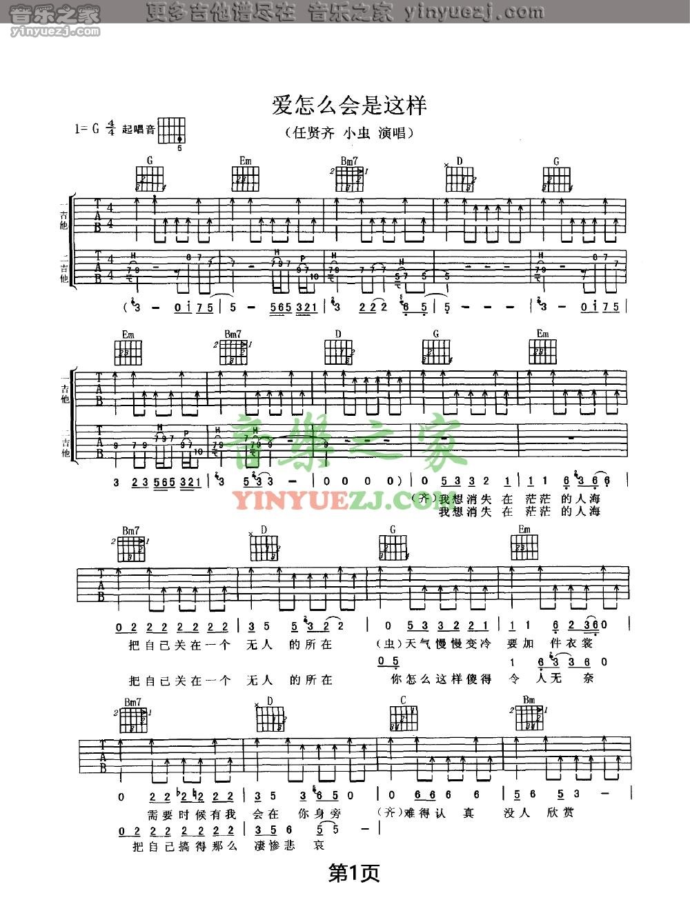 任贤齐《爱怎么会是这样》吉他谱,YYZJ编配出品,共有3张高清图谱。...