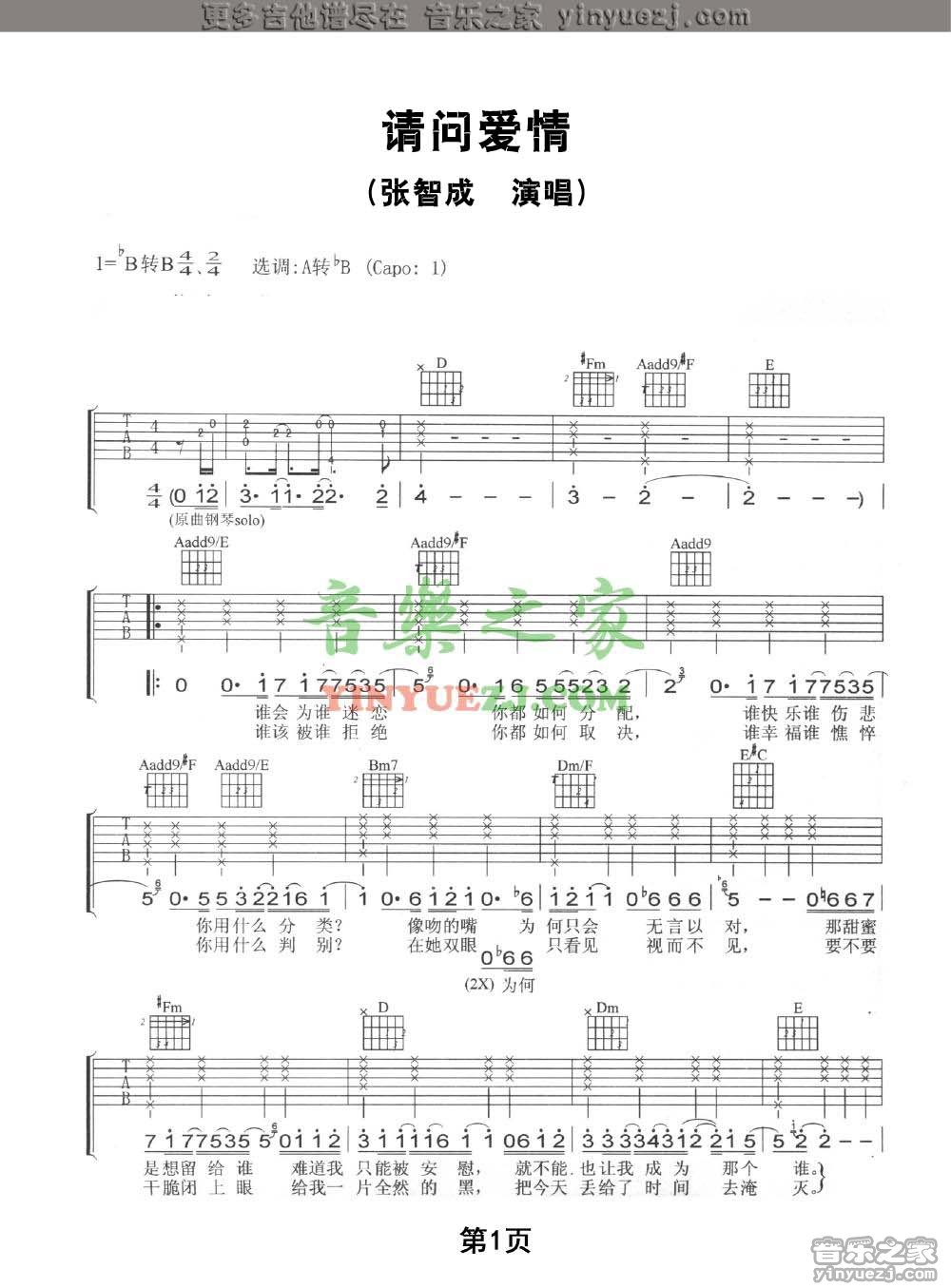 吉他张智成《请问爱情》吉他谱_吉他弹唱谱