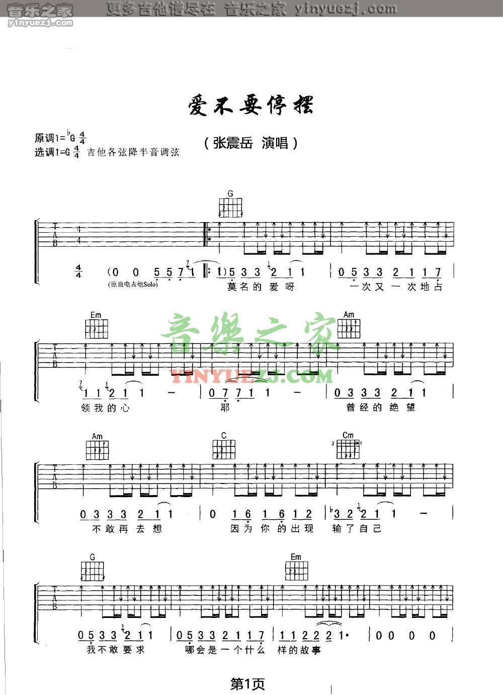 吉他张震岳《爱不要停摆》吉他谱_吉他弹唱谱_YYZJ编配