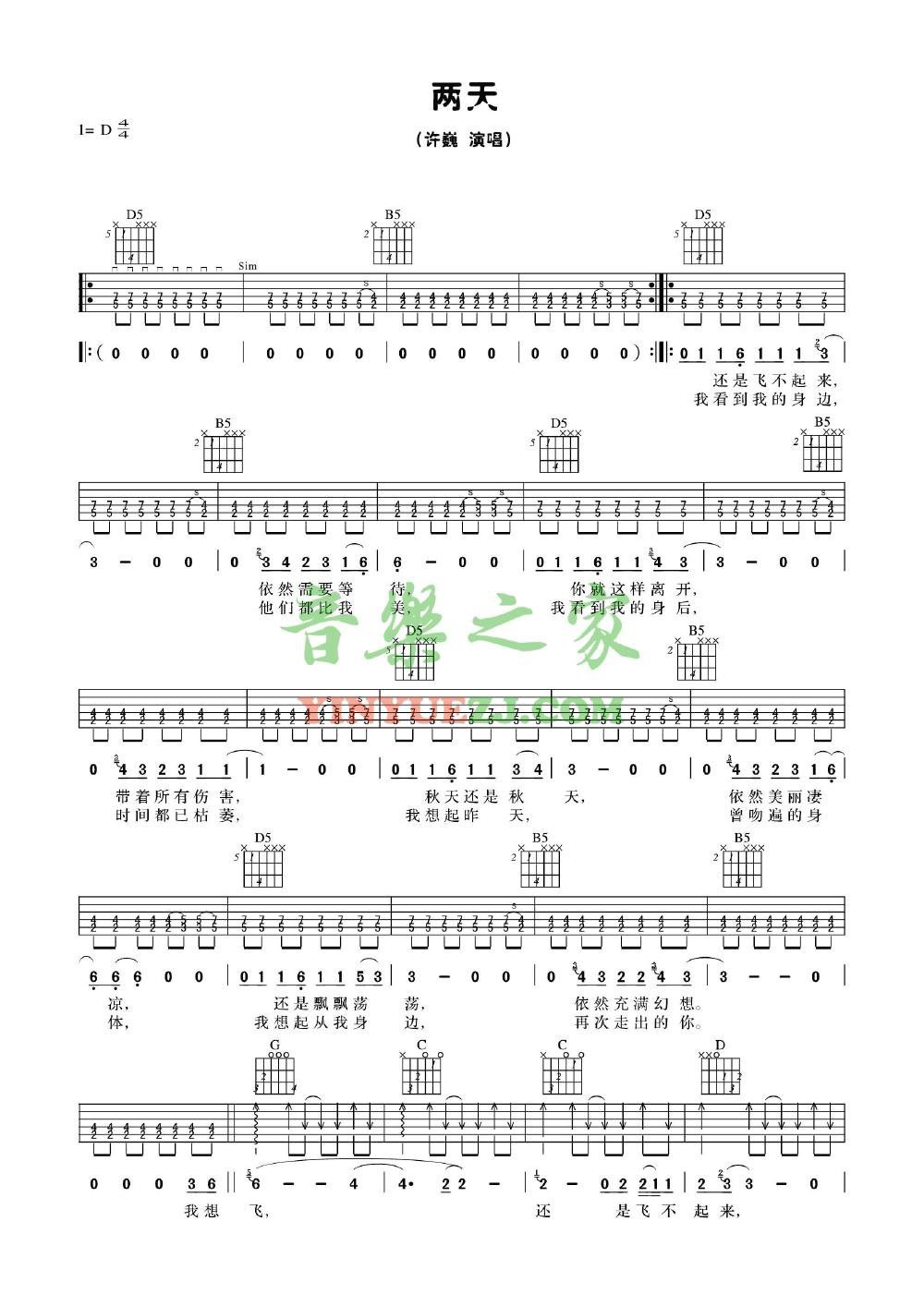 吉他许巍《两天》吉他谱_吉他弹唱谱_YYZJ编配