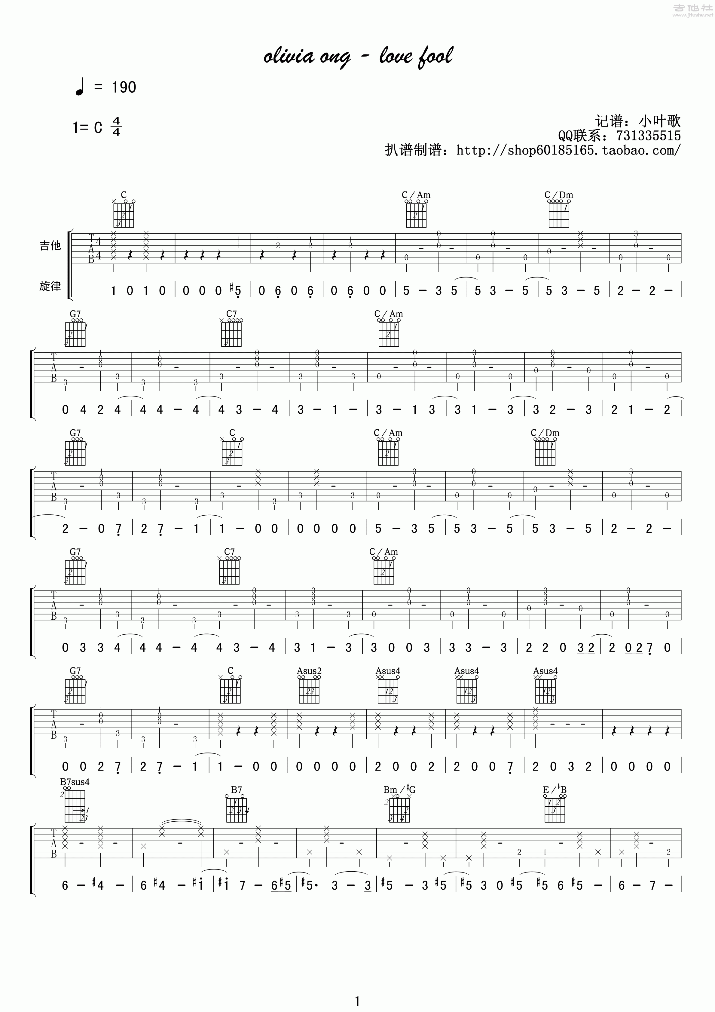 《LoveFool》吉他谱,小叶歌编配出品,共有3张高清图谱。...