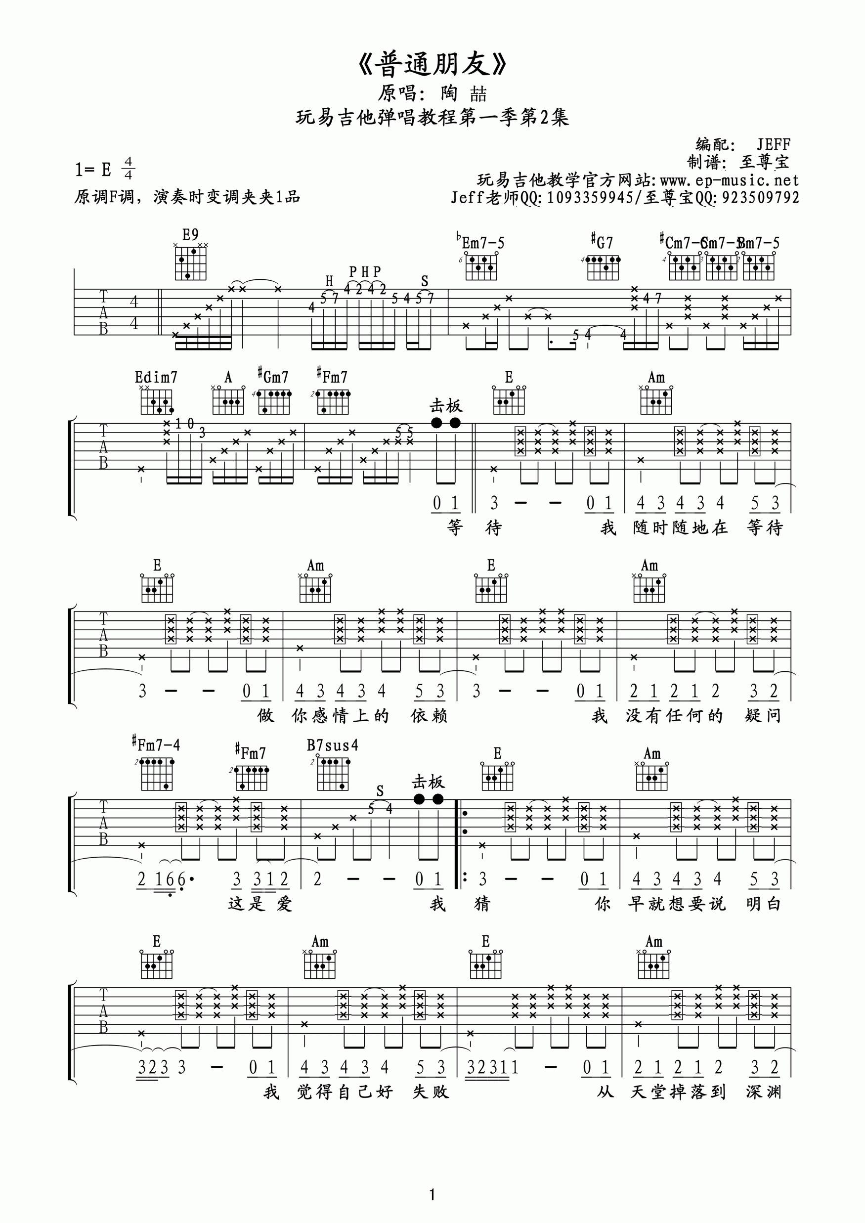 吉他陶喆《普通朋友》吉他谱_吉他弹唱谱
