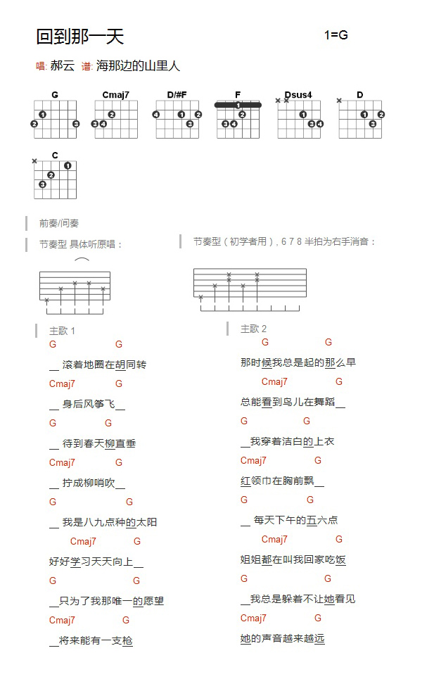 吉他郝云《回到那一天》吉他谱_吉他弹唱谱