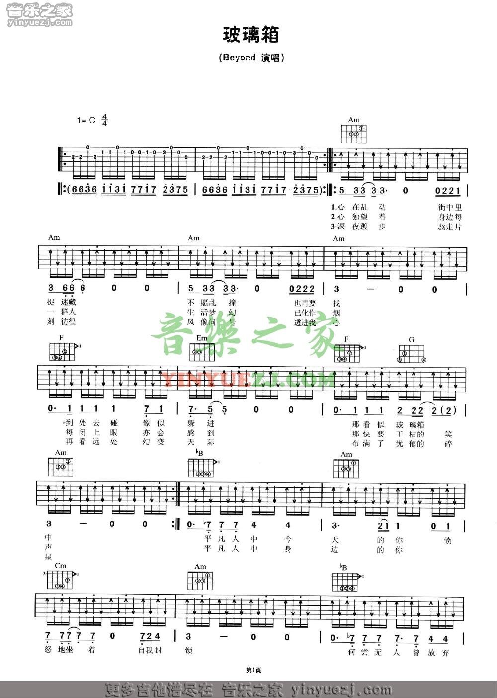 吉他Beyond《玻璃箱》吉他谱_吉他弹唱谱_YYZJ编配