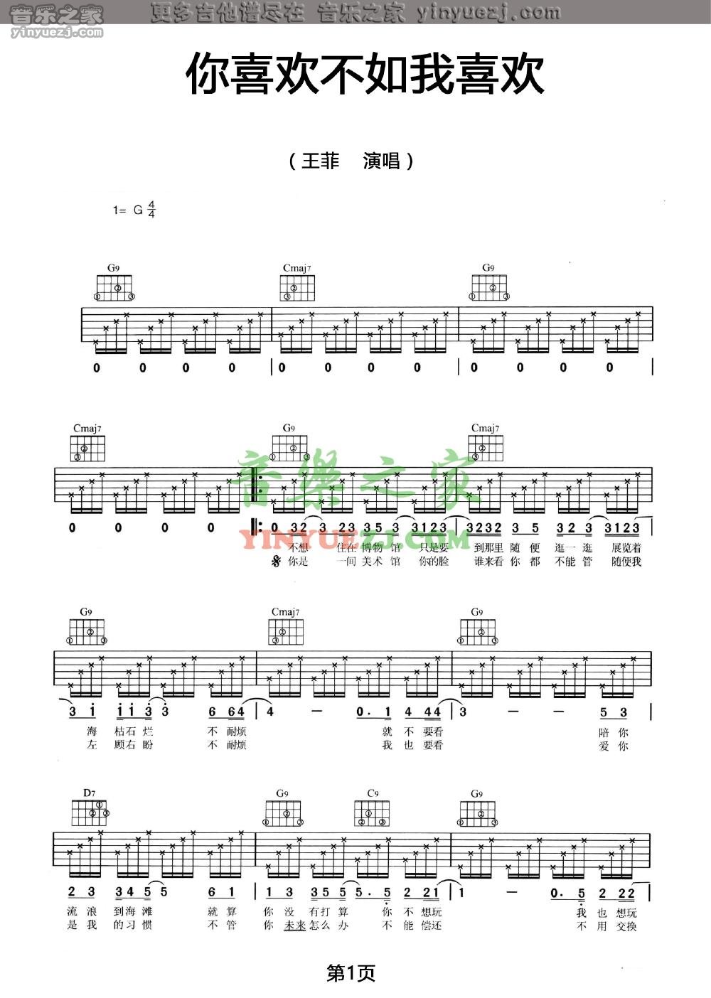 吉他王菲《你喜欢不如我喜欢》吉他谱_吉他弹唱谱_YYZJ编配