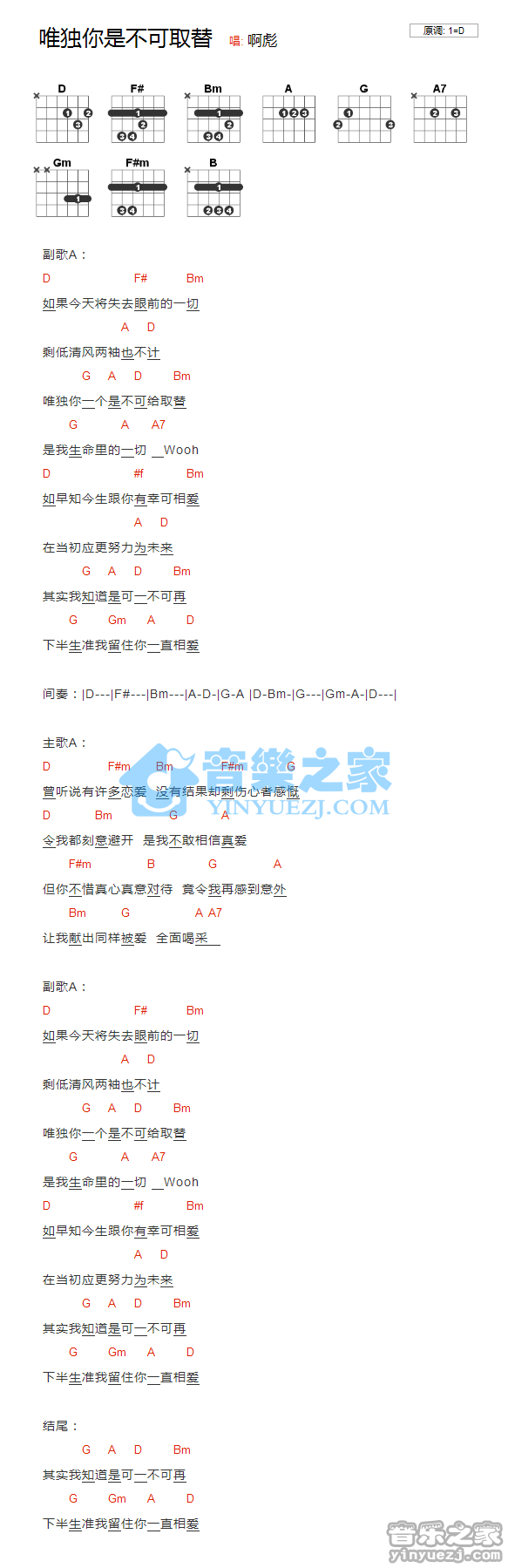 吉他郑秀文《唯独你是不可取替》吉他谱_吉他弹唱谱_YYZJ编配