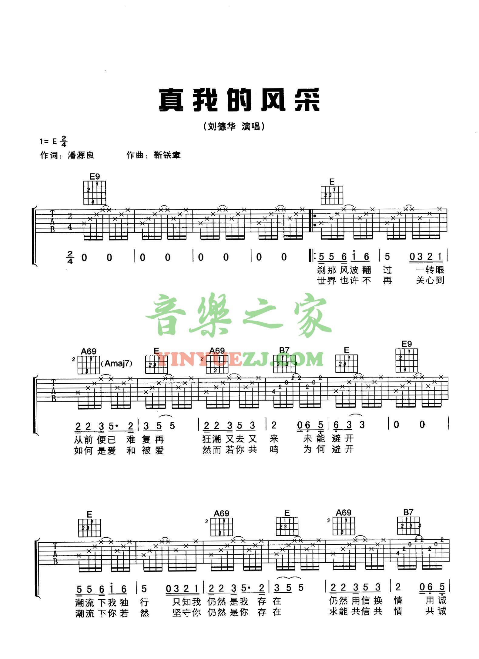 吉他刘德华《真我的风采》吉他谱_吉他弹唱谱_YYZJ编配