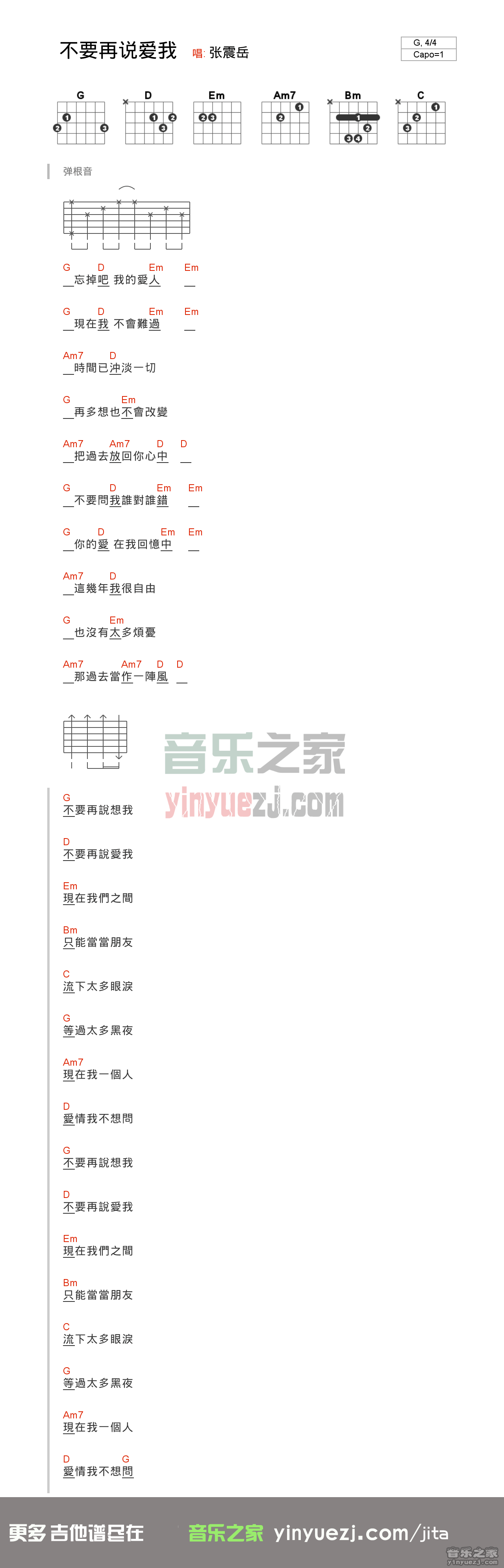 吉他张震岳《不要再说爱我》吉他谱_吉他弹唱谱_YYZJ编配