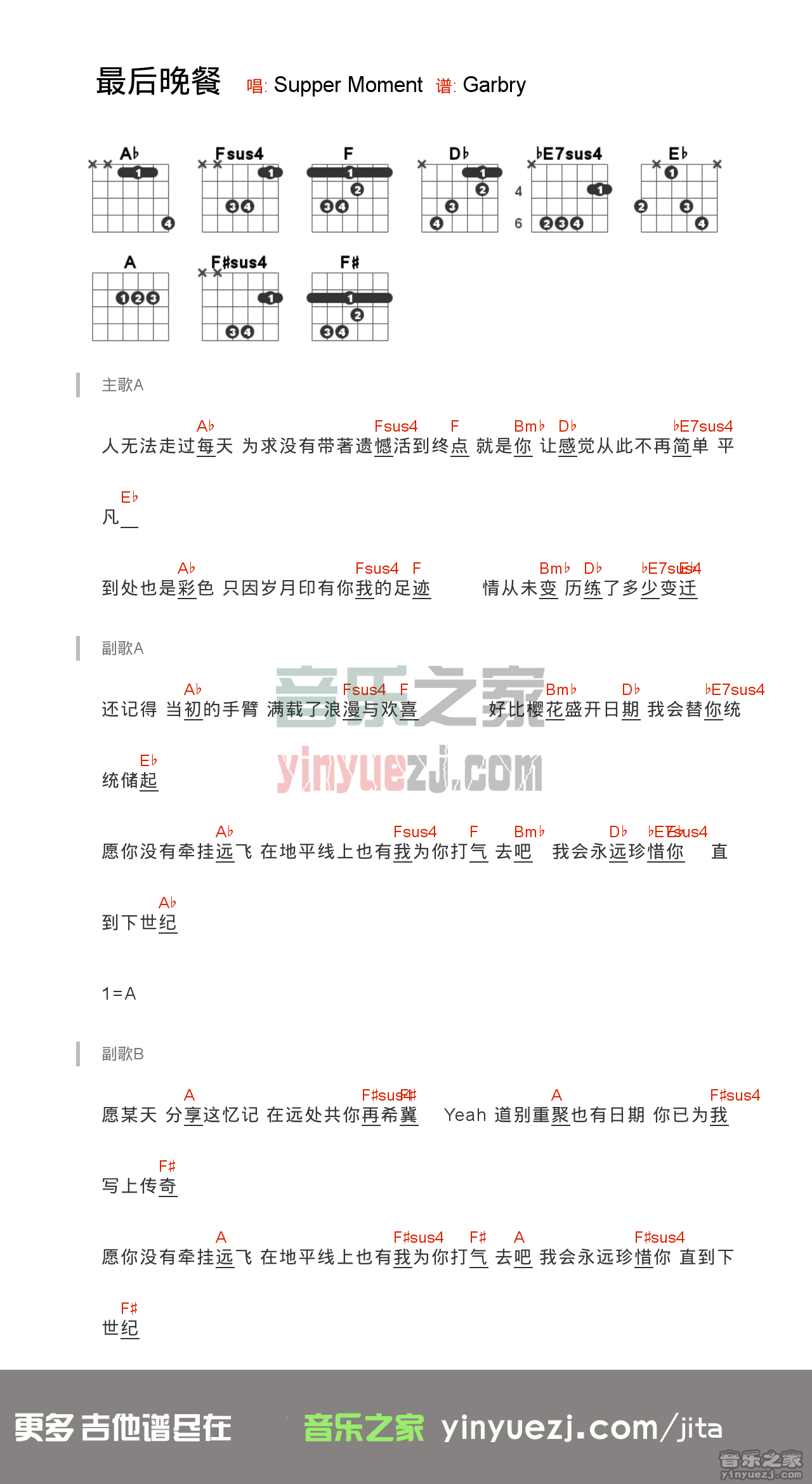 suppermoment《最后晚餐》吉他谱,共有1张高清图谱,免翻页排版设计。...