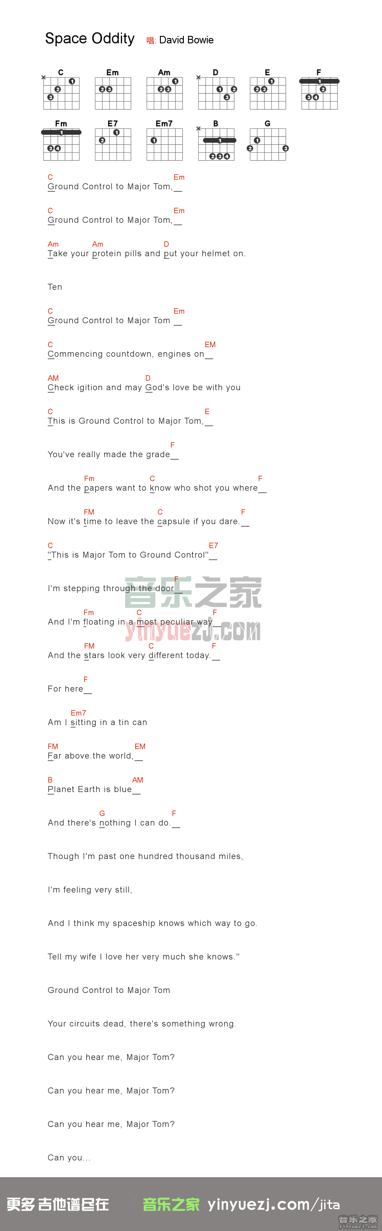 吉他吉克隽逸《space oddity》吉他谱_吉他弹唱谱_YYZJ编配